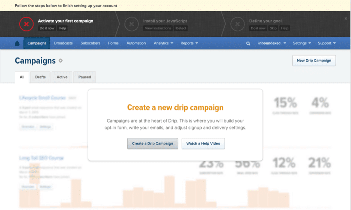 If you want to start a drip marketing campaign, Drip is a natural choice. The service focuses on the email analytics and automation portion of drip marketing, making it easy to create a campaign and track how well it performs.